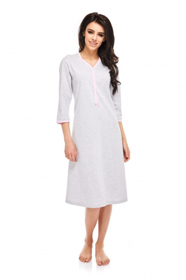 Jest wiele koszul na rynku, ale takich, naprawdę niewiele. Mariaż najmodniejszych w tym sezonie kolorów - subtelnej szarości i lekkiego, słodkiego różu z fasonem, w którym poczujesz się pięknie, wygodnie i kobieco. Poza tym koszula zachwyca swym krojem, który potrafi ukryć większe biodra,czy wystający brzuszek. Wprowadza do strefy piękności. Jest elegancka, wykonana z najlepszej gatunkowo bawełny, miękka w dotyku, elastyczna, po prostu rewelacyjna. Na tkaninie małe groszki. Dekolt z różową lamówką, zapinany na zatrzaski. Rękawy typu 3/4. Uroczy model, któremu naprawdę nie brak wdzięku. Skład: 100% bawełna.